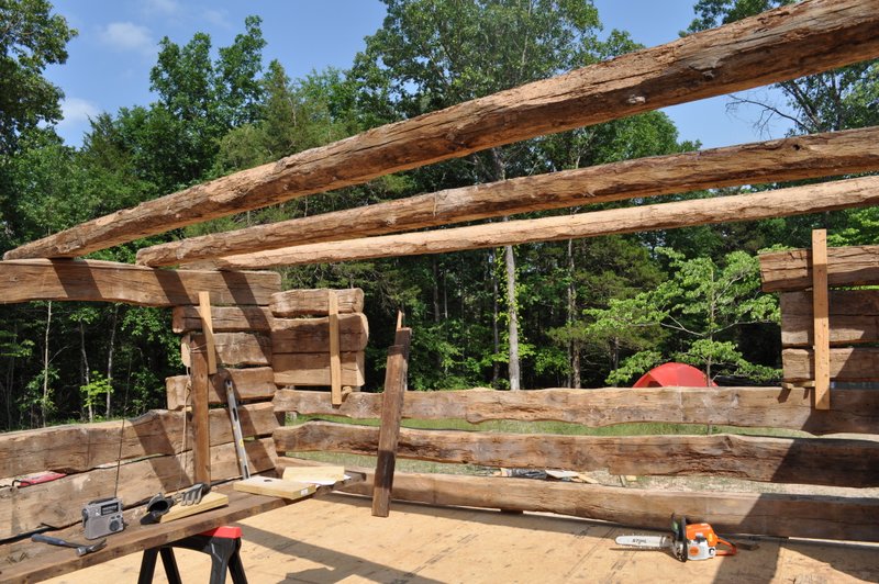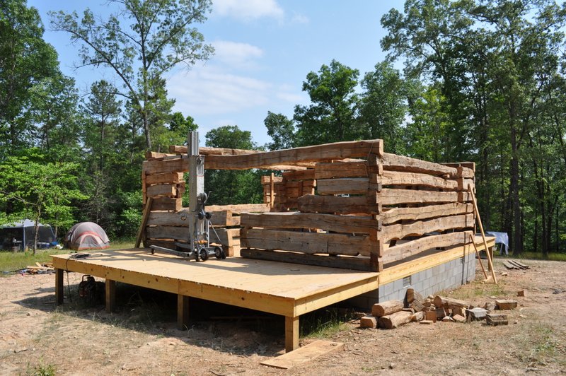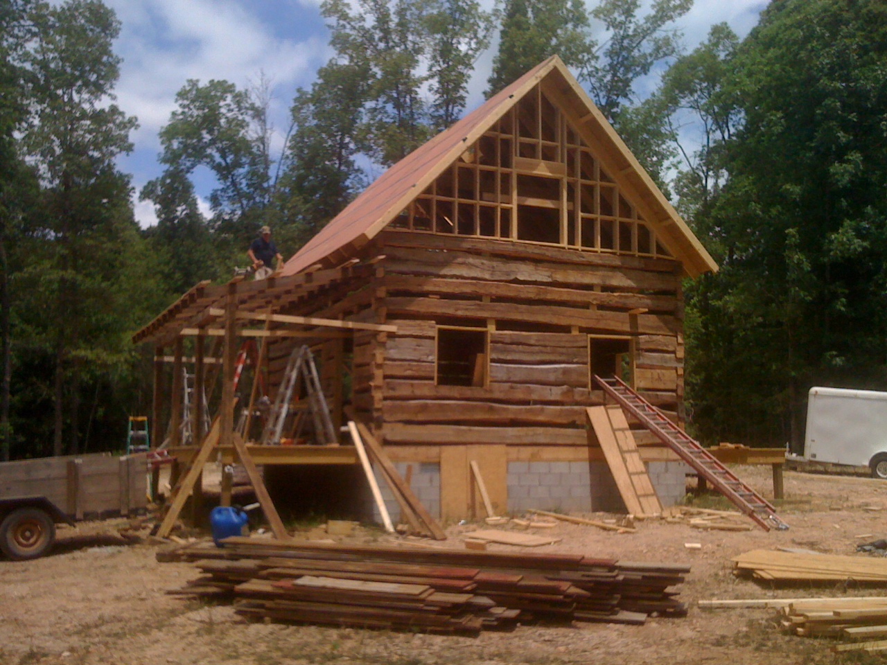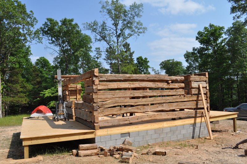 Updated 6/20/2012. We have just started a very unique project. Construction of an Antique Log Cabin near Mt. Judea, Arkansas. This cabin will have two floors, and is 20′ x 22′. We are providing the foundation, sub-flooring, porches, and roof construction for the cabin, and a company from near St. Louis, Missouri, Antique Logs Unlimited, is providing the Log Walls, Antique beams, Rustic Siding and Chinking for the project. We are really excited to be a part of such a unique build and are excited to be partnering with Antique Logs Unlimited for this project. We hope this is a start of something that we can build upon in the future.