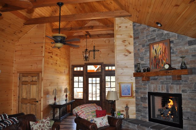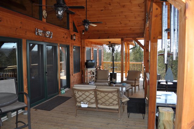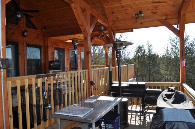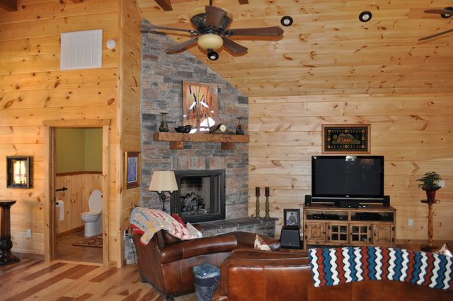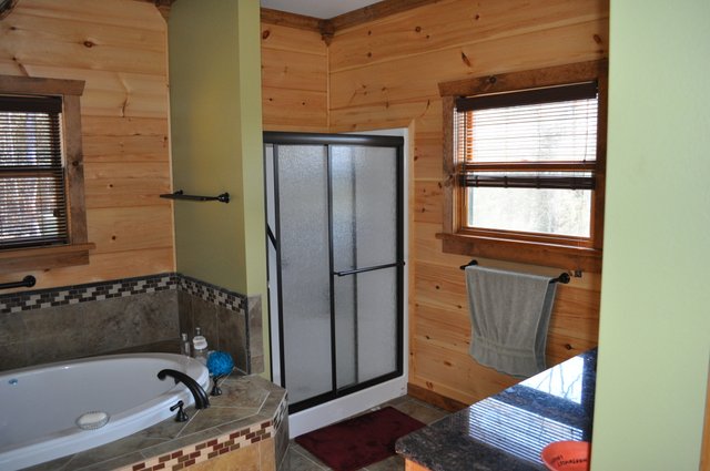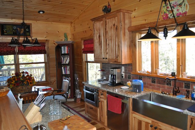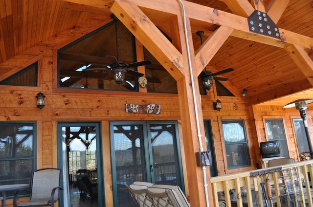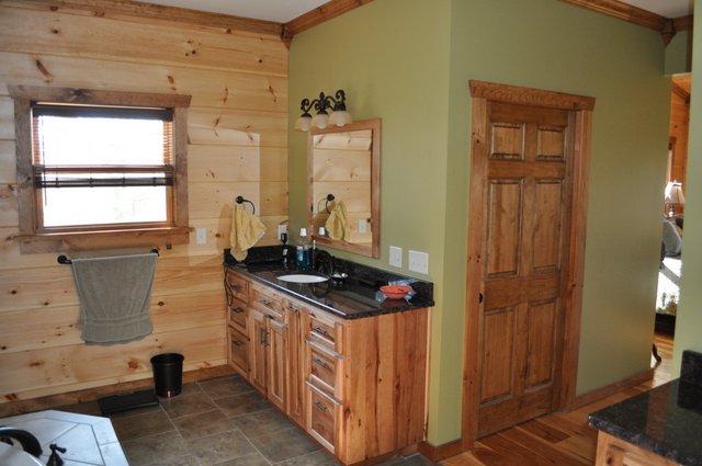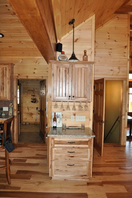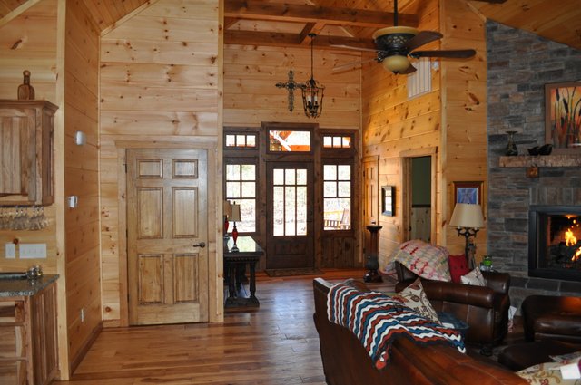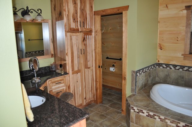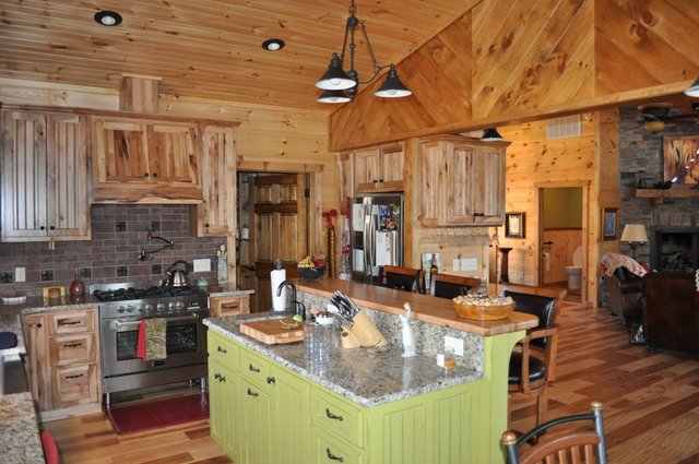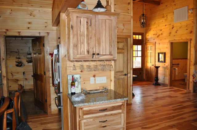 The home features some beautiful hickory hand-scraped floors, hand hewn log siding exterior, exposed timbered great room, awesome fireplace, custom designed locally built knotty alder front entry/door, custom designed hickory cabinets with granite counter tops, and some beautiful custom tile work. Check out the drop down, covered grilling porch!! Living in this home is like living in a custom cabin at a resort in the mountains every day.