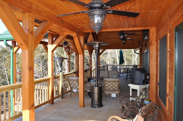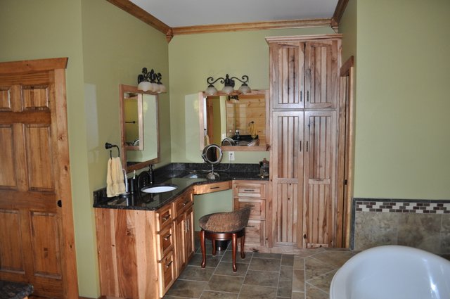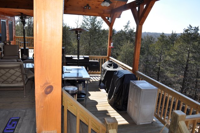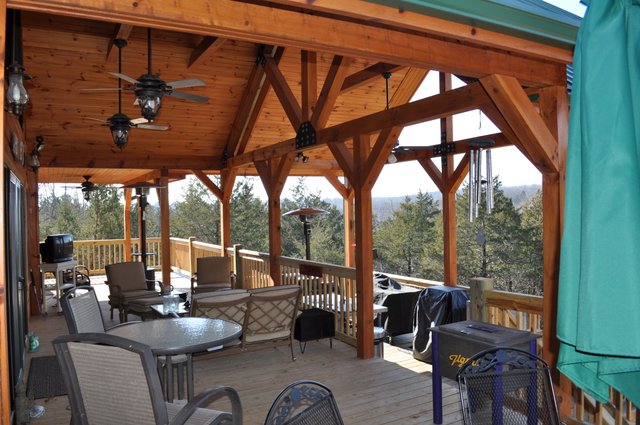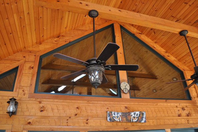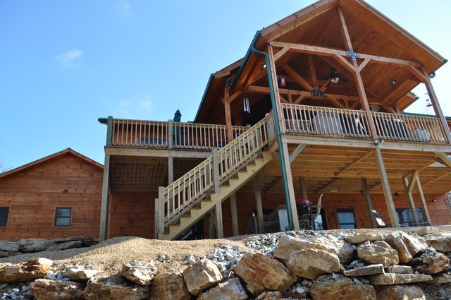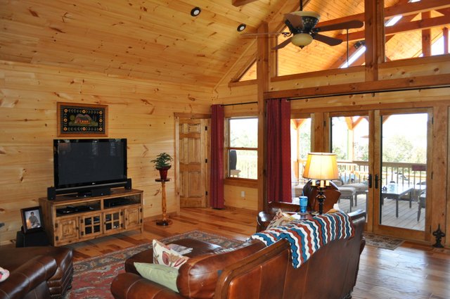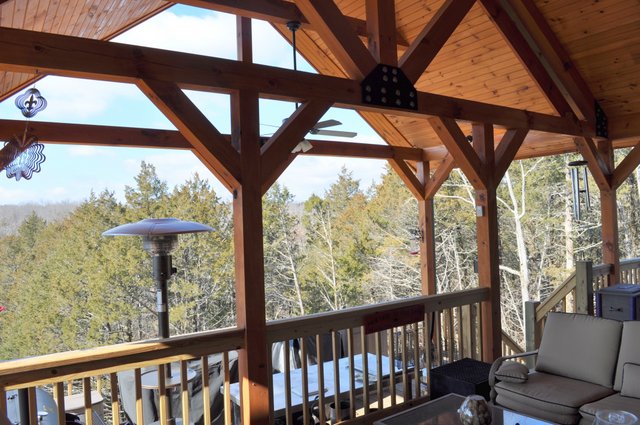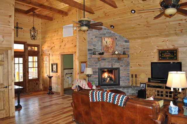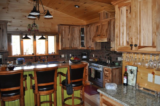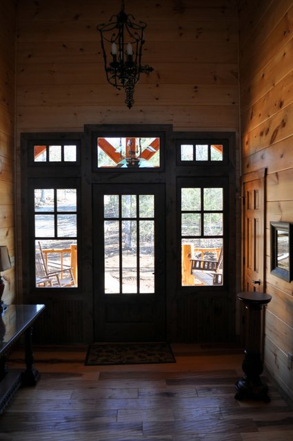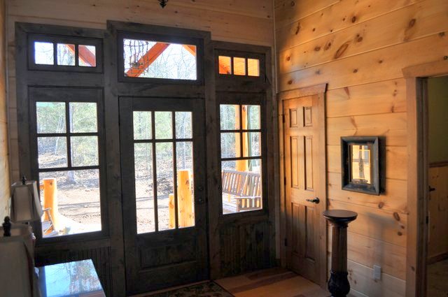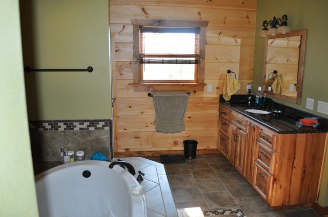 The home features some beautiful hickory hand-scraped floors, hand hewn log siding exterior, exposed timbered great room, awesome fireplace, custom designed locally built knotty alder front entry/door, custom designed hickory cabinets with granite counter tops, and some beautiful custom tile work. Check out the drop down, covered grilling porch!! Living in this home is like living in a custom cabin at a resort in the mountains every day.