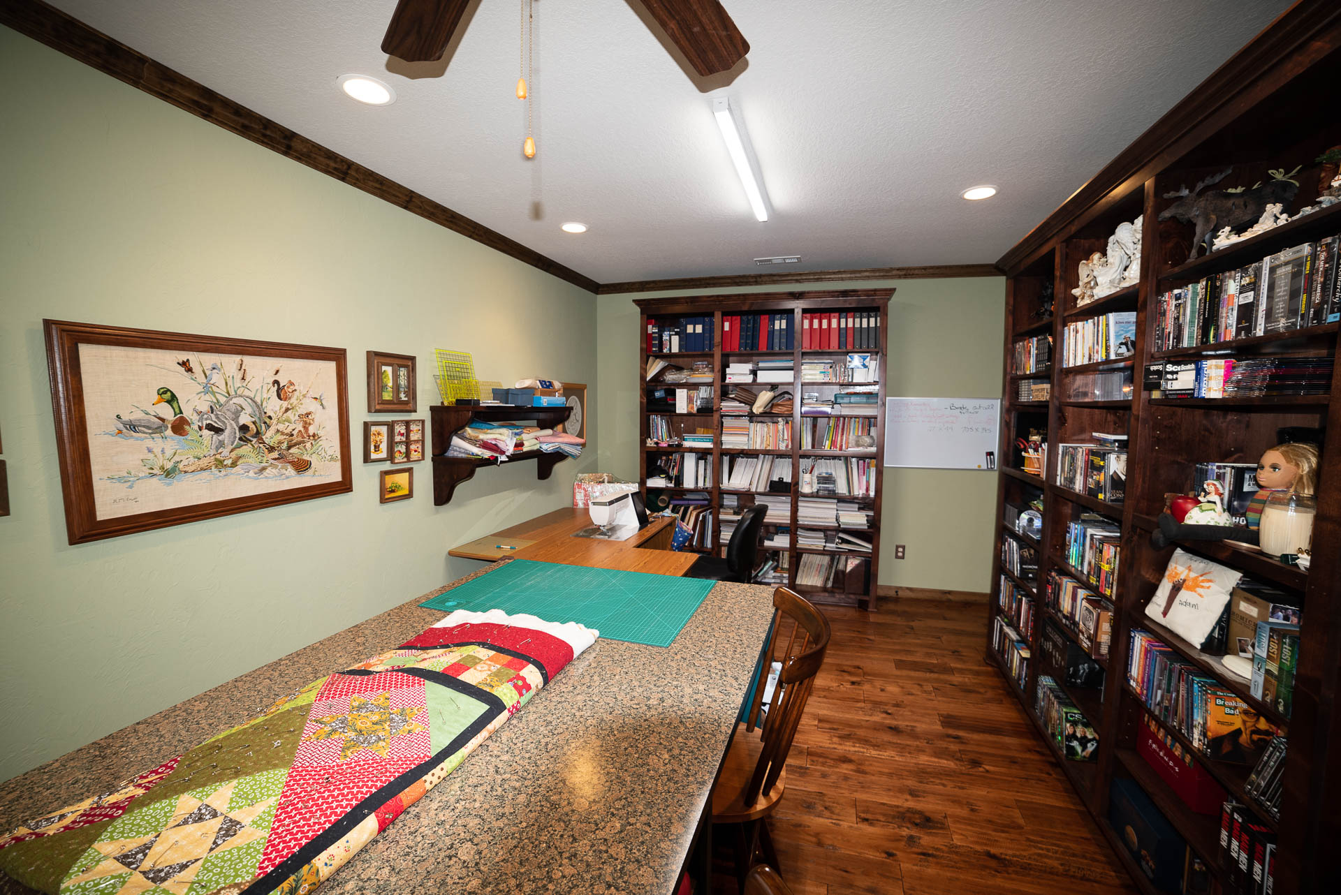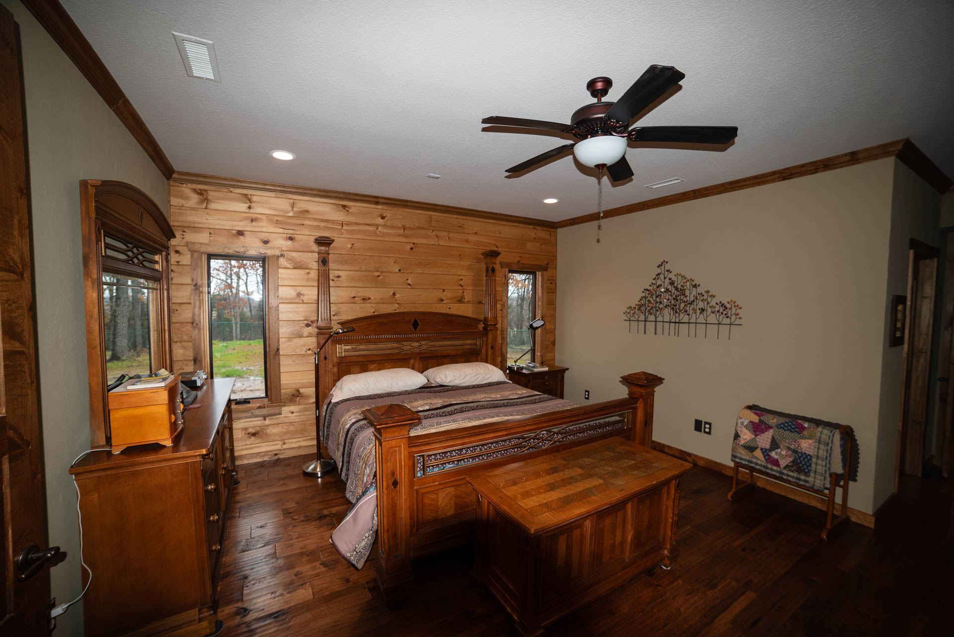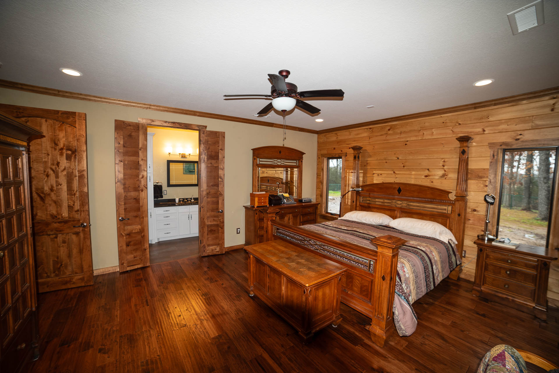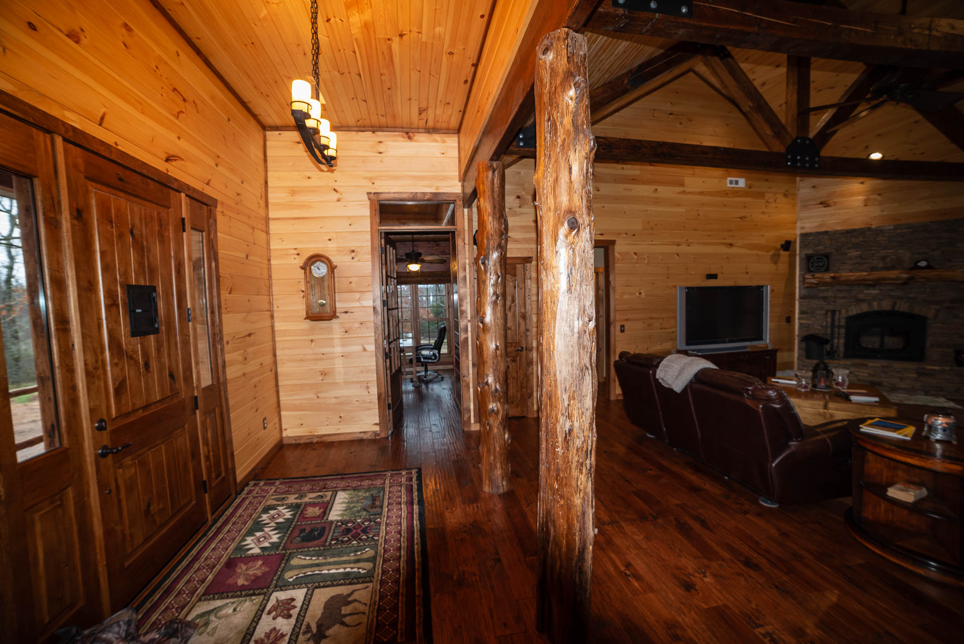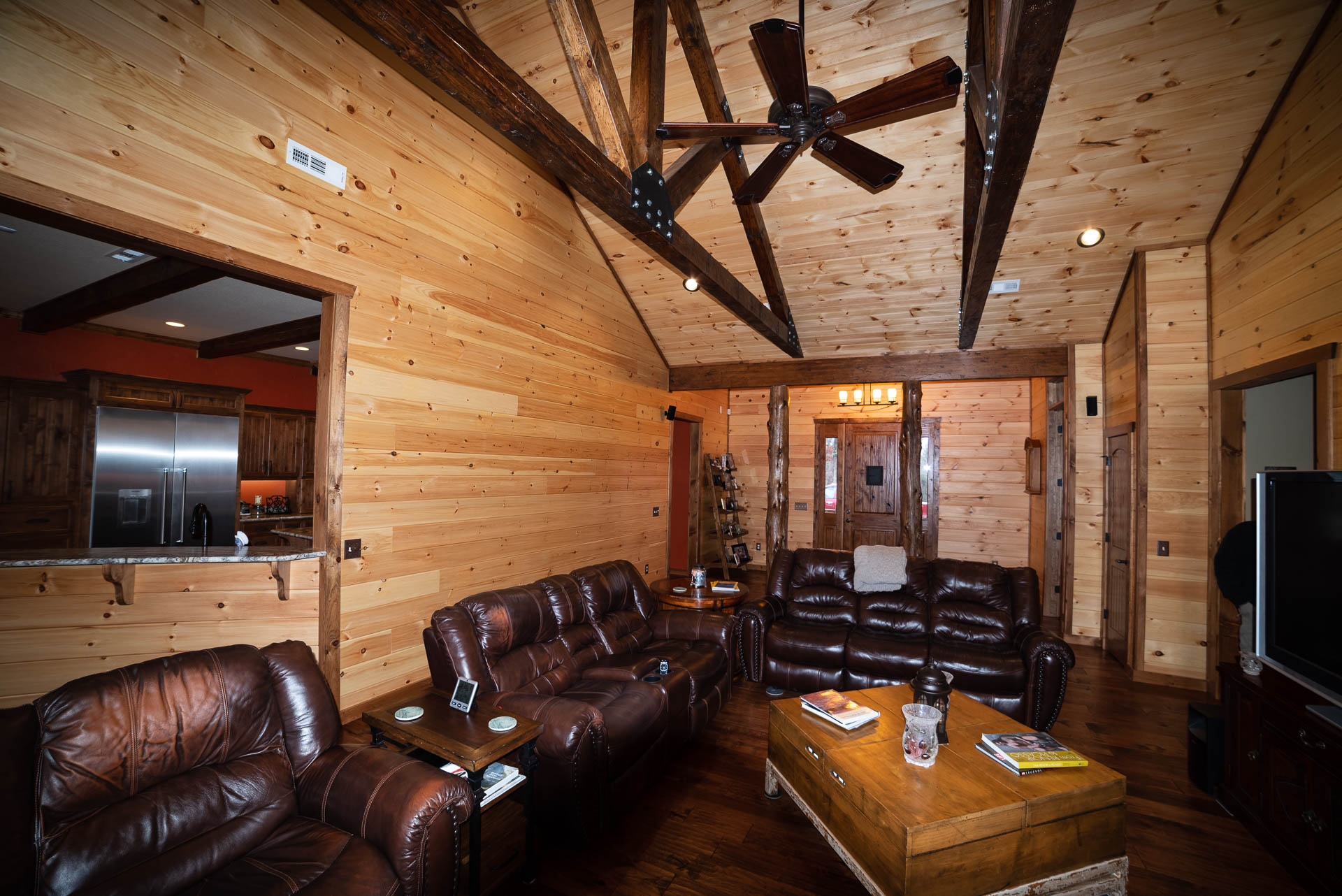 Incredible beamed trusses, cathedral ceilings, with mixed wood and painted interior and hand scraped hardwood floors and custom pantry and kitchen cabinets/countertops are just a few of the highlights in this beautiful custom home.