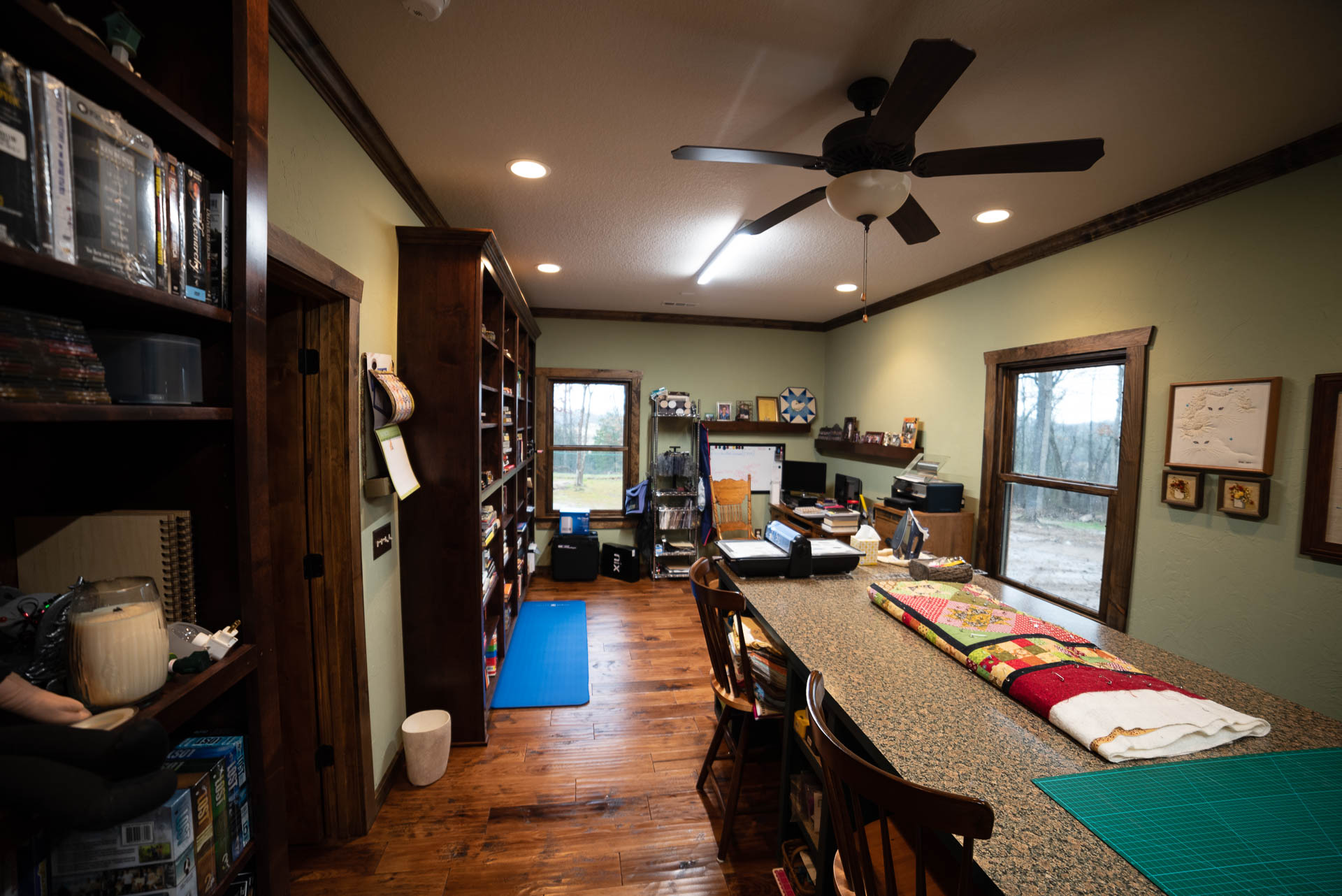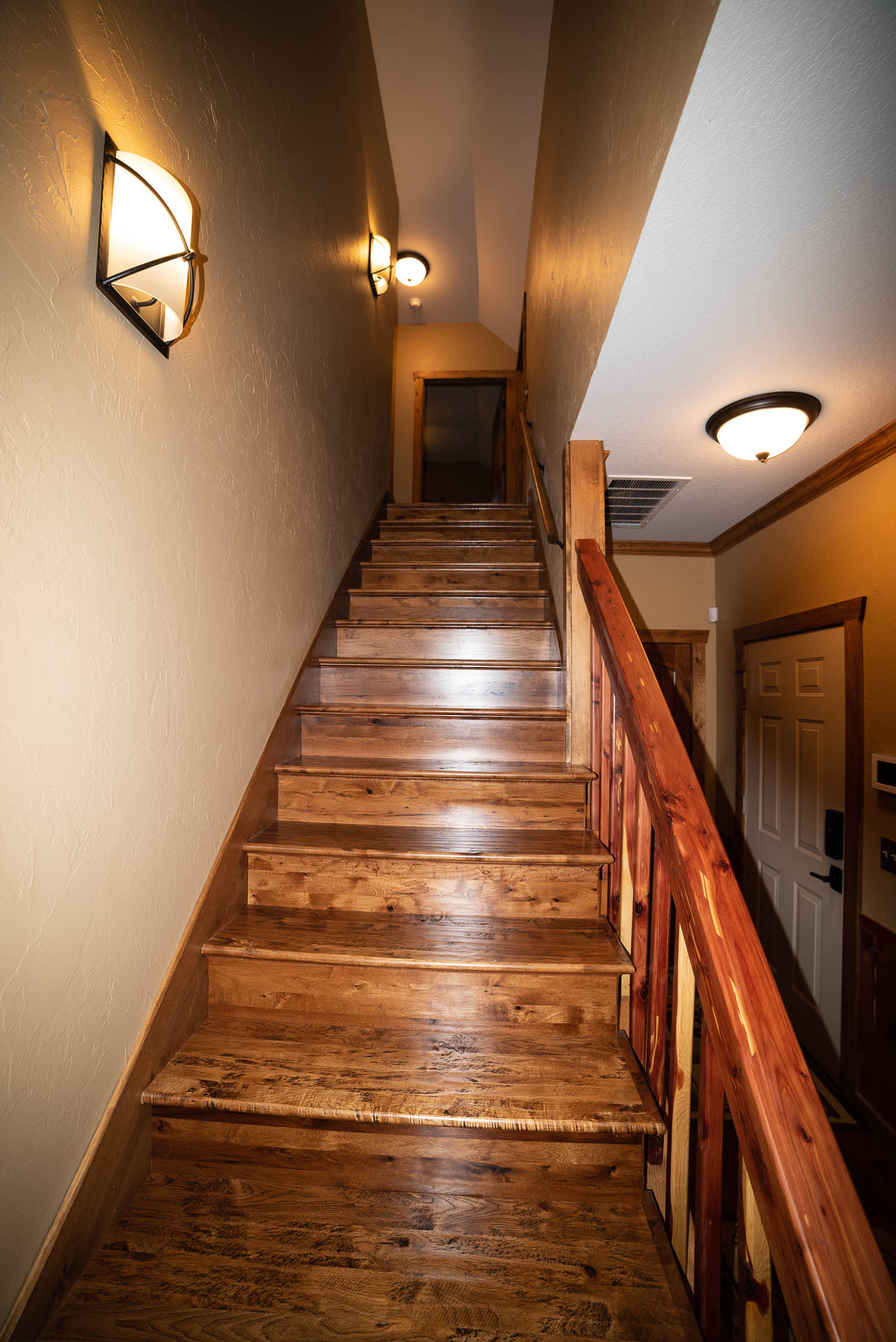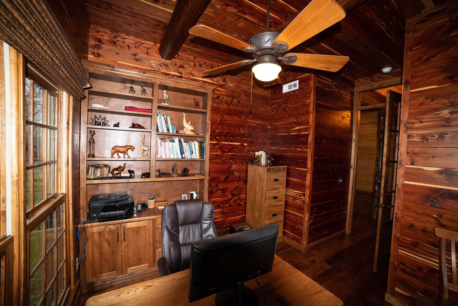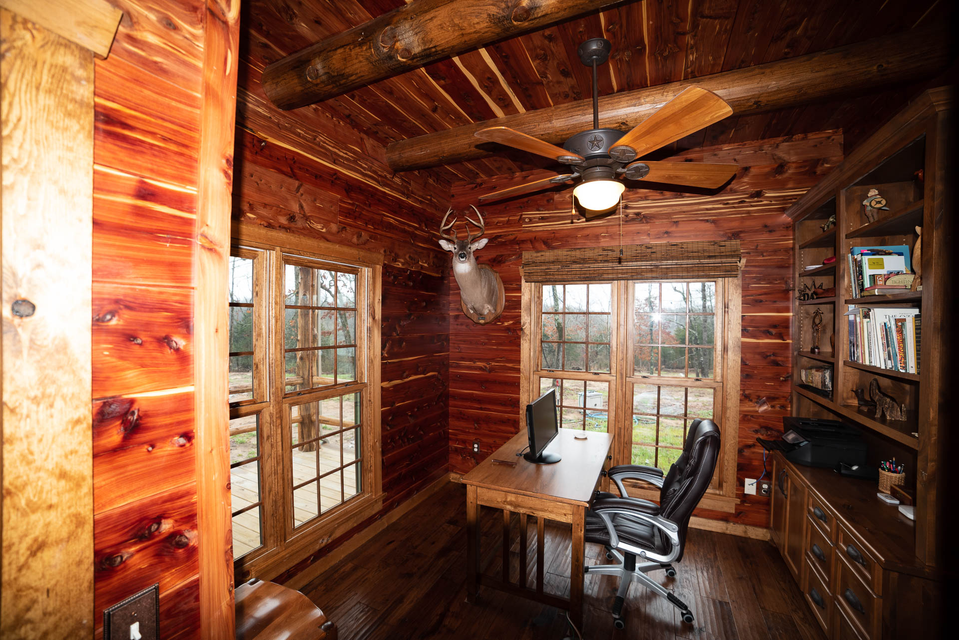 Incredible beamed trusses, cathedral ceilings, with mixed wood and painted interior and hand scraped hardwood floors and custom pantry and kitchen cabinets/countertops are just a few of the highlights in this beautiful custom home.