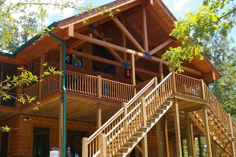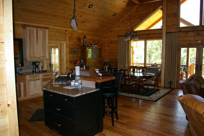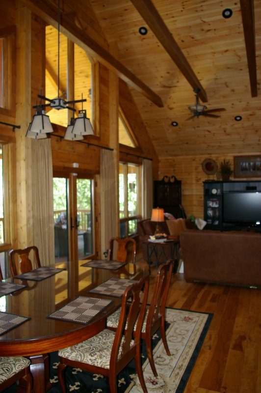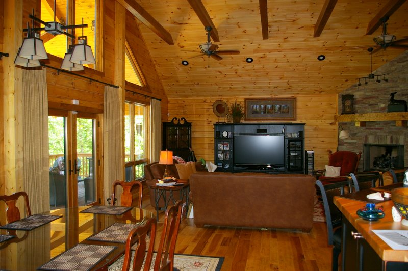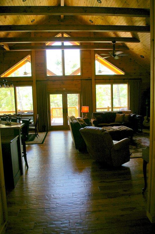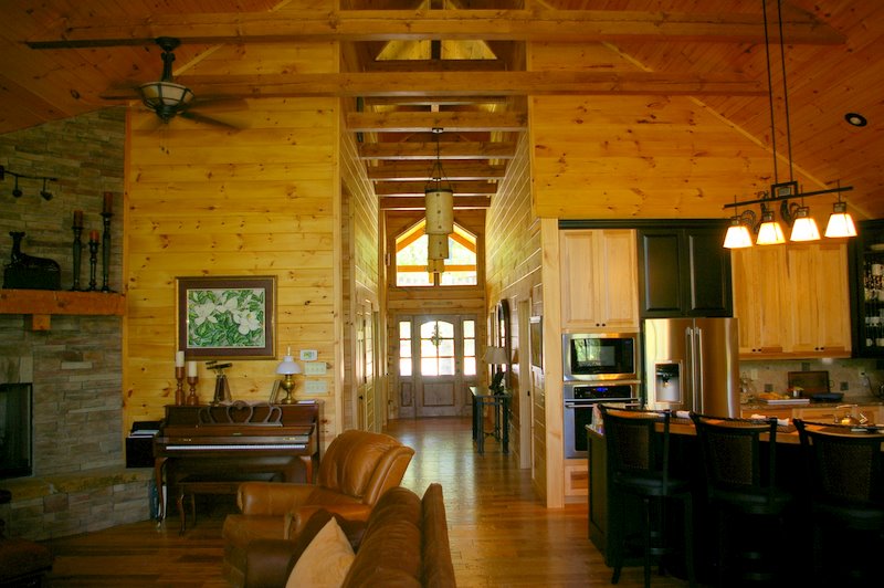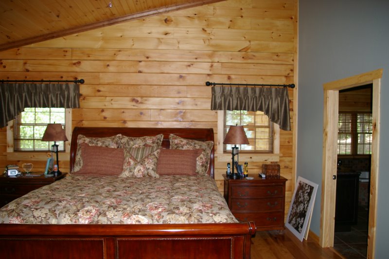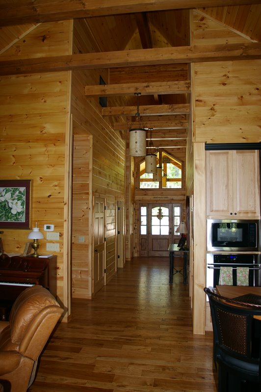 We started this home in April 2009 and it was Completed in March 2010. We had a lot of rain thru the spring and summer of 2009, which slowed things a bit, but the home was completed around the first of March, 2010. This beautiful Log Home has over 6600 square feet under roof, has a full finished basement and lots of great features including, hand scraped hickory floors, vaulted ceilings with beams, beautiful wood and mixed wood drywall interior, custom hickory cabinets, a very nice library area, beautiful custom tile work, and check out the master closet!!