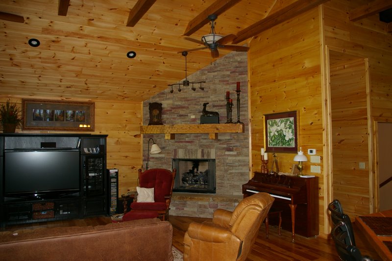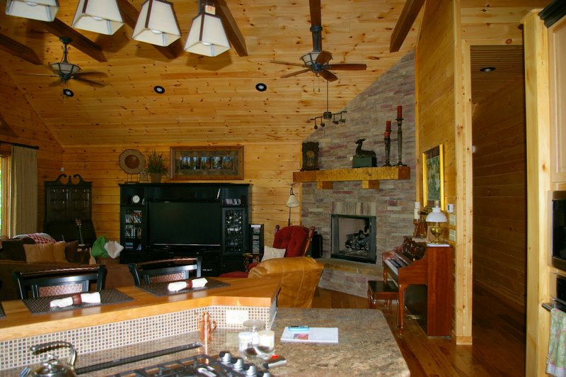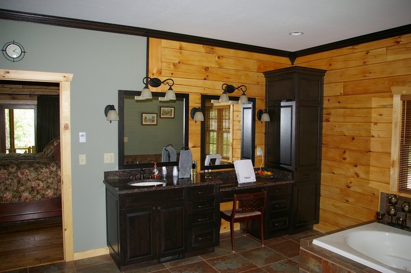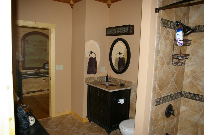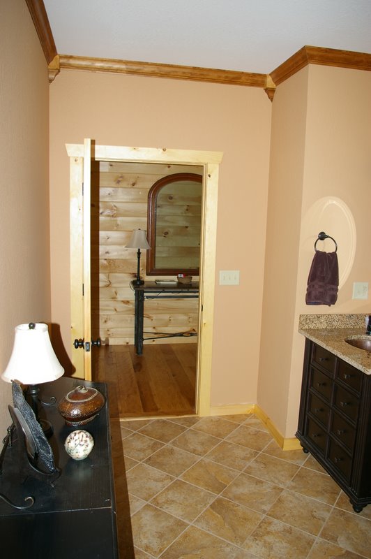 We started this home in April 2009 and it was Completed in March 2010. We had a lot of rain thru the spring and summer of 2009, which slowed things a bit, but the home was completed around the first of March, 2010. This beautiful Log Home has over 6600 square feet under roof, has a full finished basement and lots of great features including, hand scraped hickory floors, vaulted ceilings with beams, beautiful wood and mixed wood drywall interior, custom hickory cabinets, a very nice library area, beautiful custom tile work, and check out the master closet!!